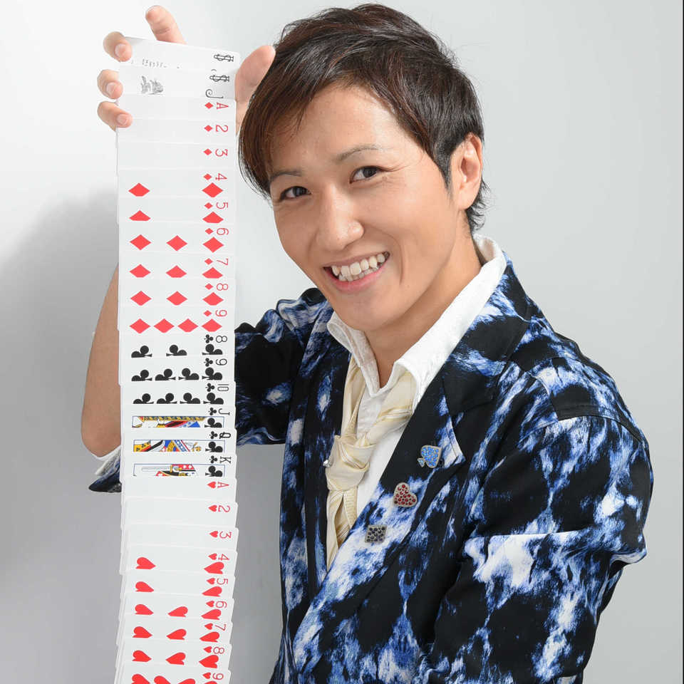 マジックの技もさることながら、爽やかで可愛らしい笑顔の魅力に時間を忘れて幸せな気持ちになれる。そんな不思議な魅力を持った実力派のマジシャンです。